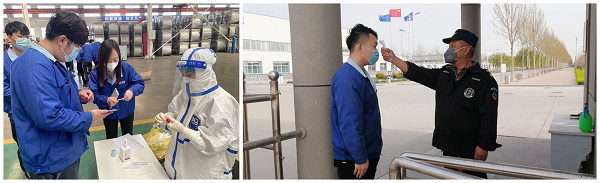 为确保生产人员齐全、客户紧急订单不受影响,厂区紧急开展会议调度生产安排,对各道工序所需人员及人数严格控制,在保证生产效率的同时,确保职工防护安全,以最少的人员保证生产。厂区实行闭环管理,集团坚持防疫、稳产两手齐抓,确保生产工作稳步运行。一方面推动各项防疫措施落实落细,为员工筑起一道安全屏障;另一方面坚持齐心协力落实生产工作。