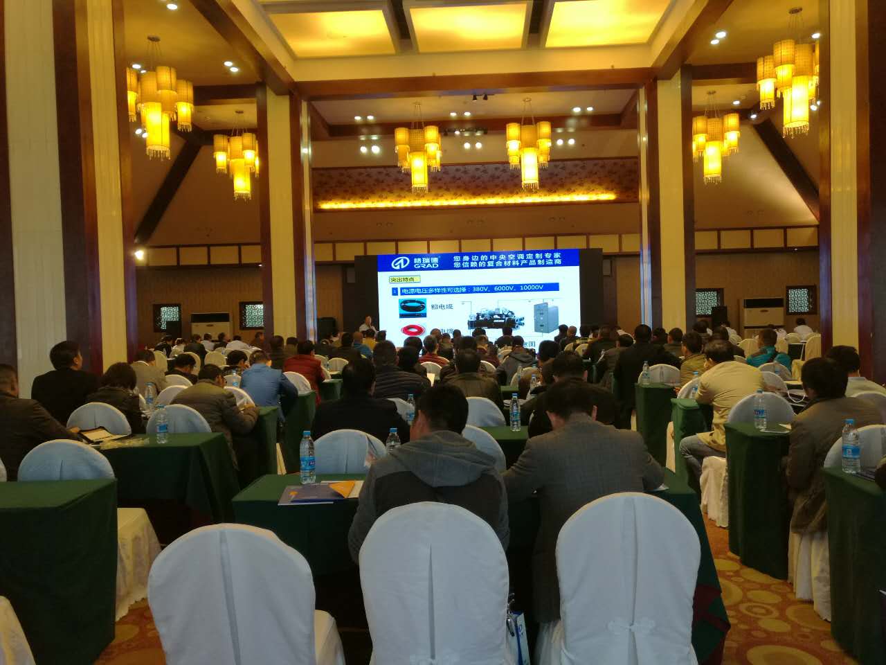 格瑞德集团董事长兼总裁管印贵先生对各位朋友的到来致以最真诚的欢迎。管总结合当前的经济形势,讲述了集团的五年发展规划,加快企业管理和人才队伍升级;加强发展和建设企业技术中心;通过两中心+两基地建设,全面布局中央空调和复合材料产业升级;大力发展产业平台,全面提升产业领导能力和平台化运营能力;以项目整体承揽能力为中心,大力发展中央空调核心业务;通过加强新产品、新项目的开发能力,全面开拓先进、复合材料制作领域。
